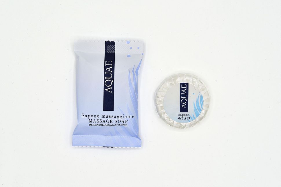 Le amenities sono confezionate in sacchetti di polpa di cellulosa, soffici perchè esenti da plastica.