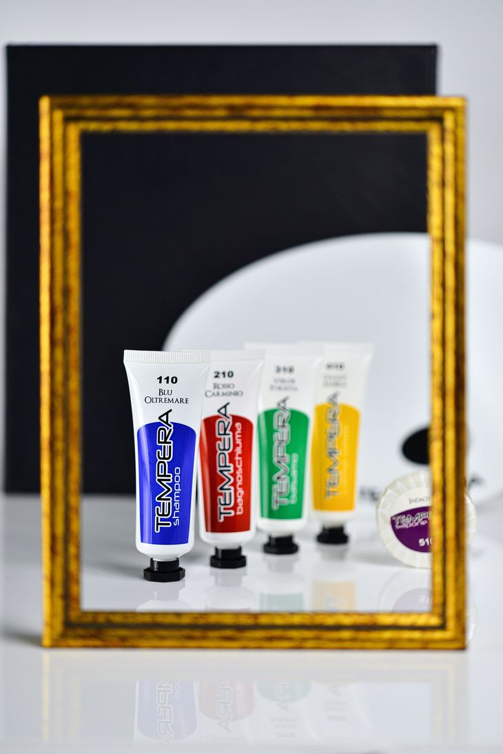 Tempera è stata pensata per chi vuole osare e uscire dai soliti schemi. Una linea cortesia dai colori allegri e vivaci, per rendere unica e creativa la cura del proprio corpo. Il particolare packaging in tubetti di tempera e la profumazione d’argan stimolano la fantasia di ogni persona.