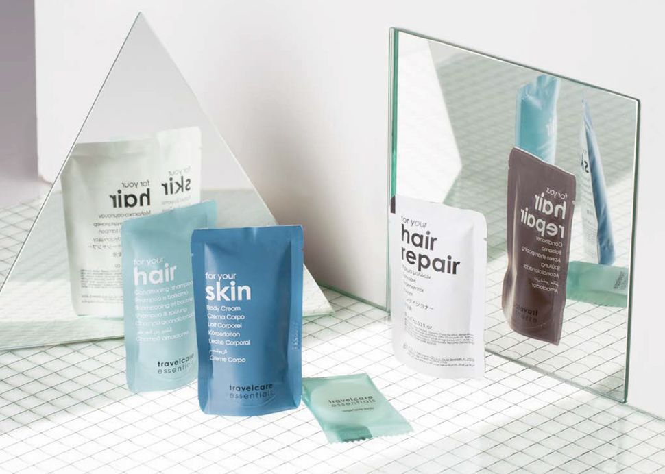 Travel Care Essentials è una linea pensata per un utilizzo monodose, essenziale nella confezione ma molto pratica. La bustina freestanding , per avere un'esposizione d'effetto, è stampata su entrambi i lati, un lato totalmente bianco e l'altro con tenui colori pastello.