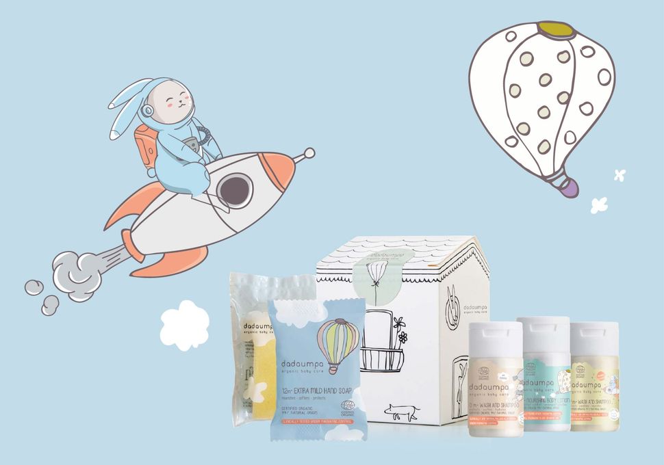 La confezione è animata da personaggi divertenti; un coniglio verde e un gattino che volano in mongolfiera. Soffici nuvole e colori pastello si combinano per creare un'estetica calda e invitante. Gli elementi giocosi sono più notevoli negli accessori, dal libro da colorare alla spugna. Formulato per essere delicato senza lacrime e più sorrisi. La gamma Dadaumpa è progettata per fornire cosmetici di qualità superiore per la pelle dei più piccoli, che è più vulnerabile durante il primo anno del bambino. I prodotti per l'igiene e la protezione dedicati ai bambini sono testati sotto guida pediatrica per garantire formule non aggressive, concepite con tecnologie all'avanguardia e sviluppate con una texture perfetta.